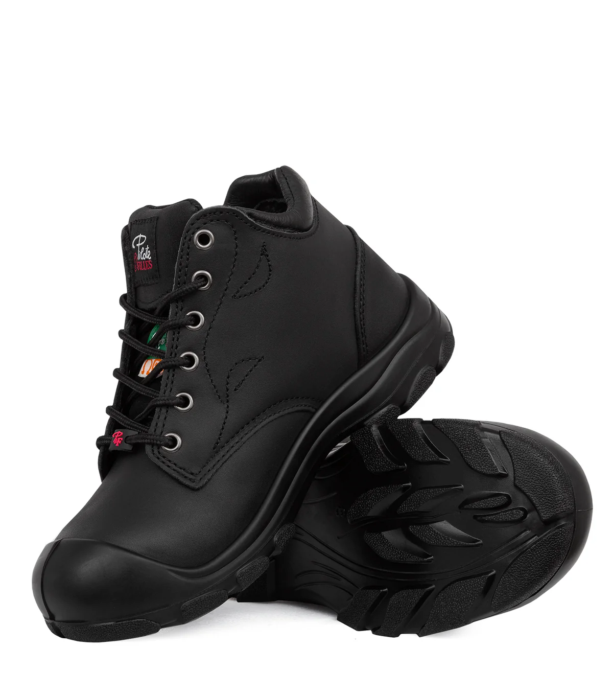 Classic, comfortable, and made for her: this 6” leather work boot with a steel toe cap and steel plate delivers timeless style designed for hardworking women. A safety essential with a clean look that blends durability and all-day comfort with a feminine fit.