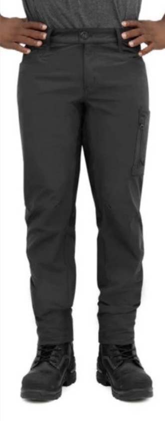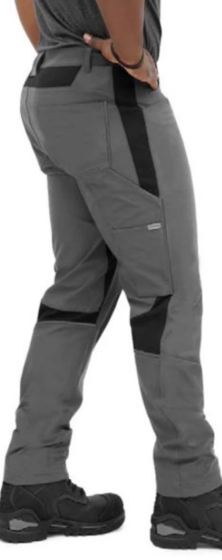 Four-way stretch pants designed for comfort and movement, with durable reinforced inserts and a water- and dirt-repellent finish. Features seven pockets (including a zip and double tool pocket), reflective accents, and seven belt loops.