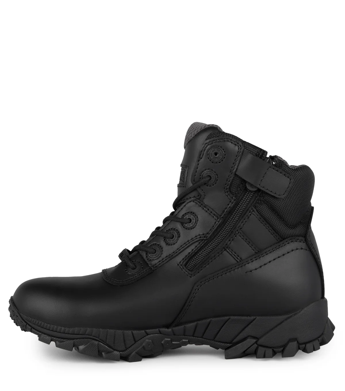 This ultralight 6” STC tactical boot with Vibram TC4+ slip resisting outsole is made of leather and PU coated nylon. It contains a breathable and waterproof membrane resistant to pathogenic agents.