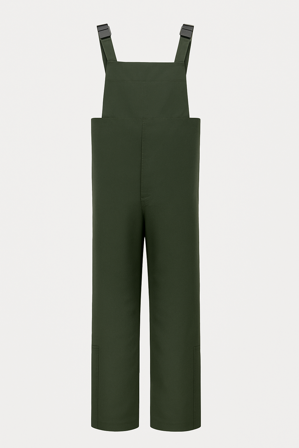 • Bib pants with adjustable elastic suspenders and buckle closure.